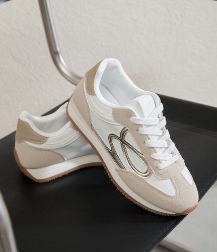 Cream & Beige Gold Swirl Trainers
