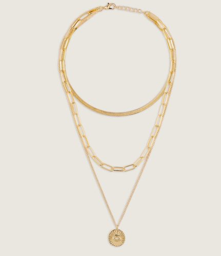 Four-Layer Sunburst Pendant Necklace In Gold Tone
