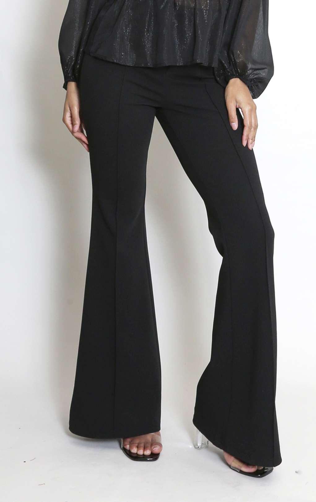 These smart stretch-fabric trousers feature a front seam, a subtle flare kick, and a smooth concealed fastening that lies neatly against the waist. They are available in black brown and burgundy in sizes. XS- L- perfect for dressing up or for every day office where