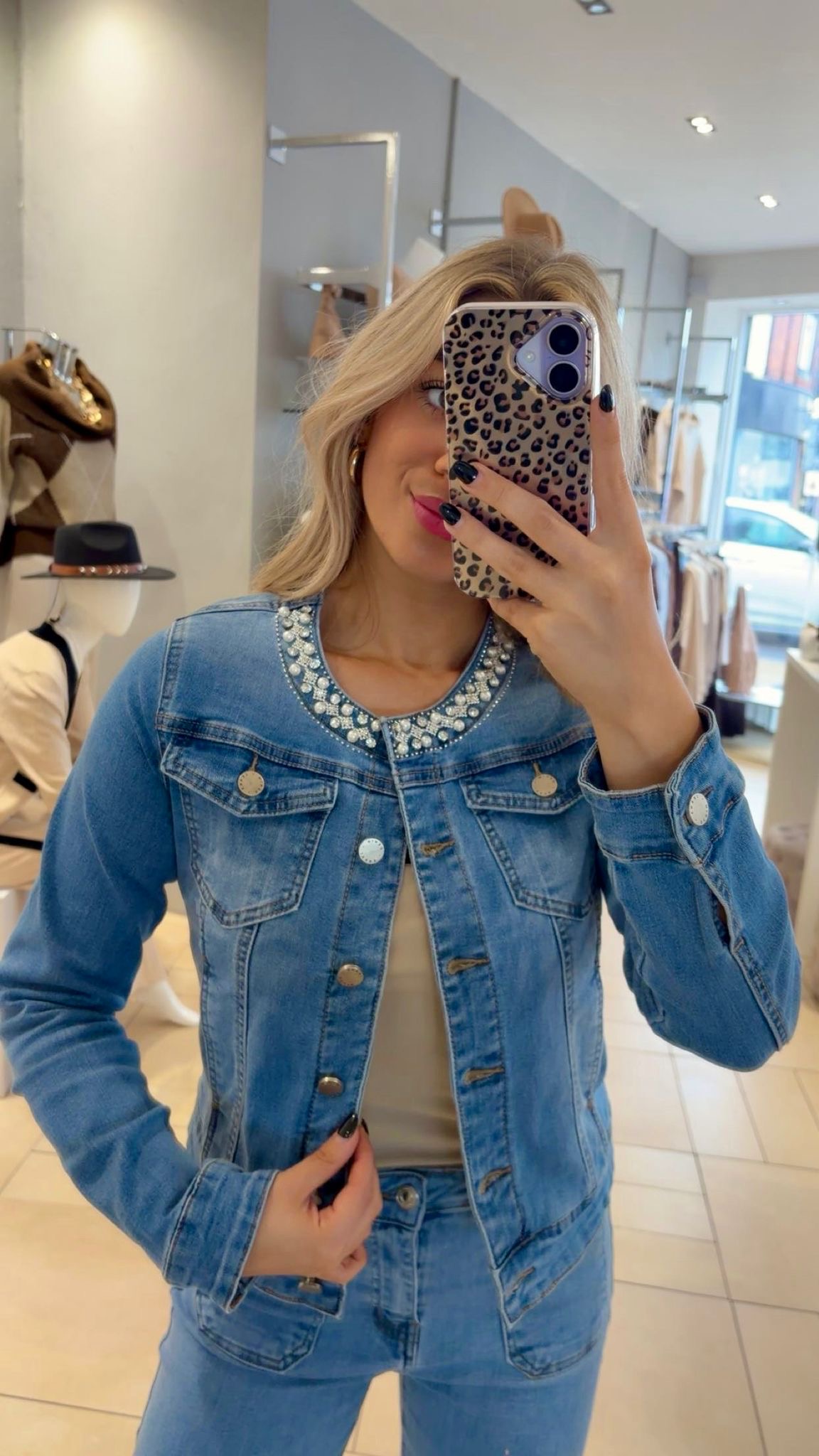 This denim jacket combines stretch, structure, and style. Cut to hit at the hip, it creates a flattering silhouette — perfect layered over longer tees or dresses. The pockets and subtle embellished details elevate it instantly, dressing up any outfit with minimal effort. Available in sizes S -XL; we recommend sizing up for a comfortable fit. A versatile mid-blue wash piece, it’s effortless to style day or night.