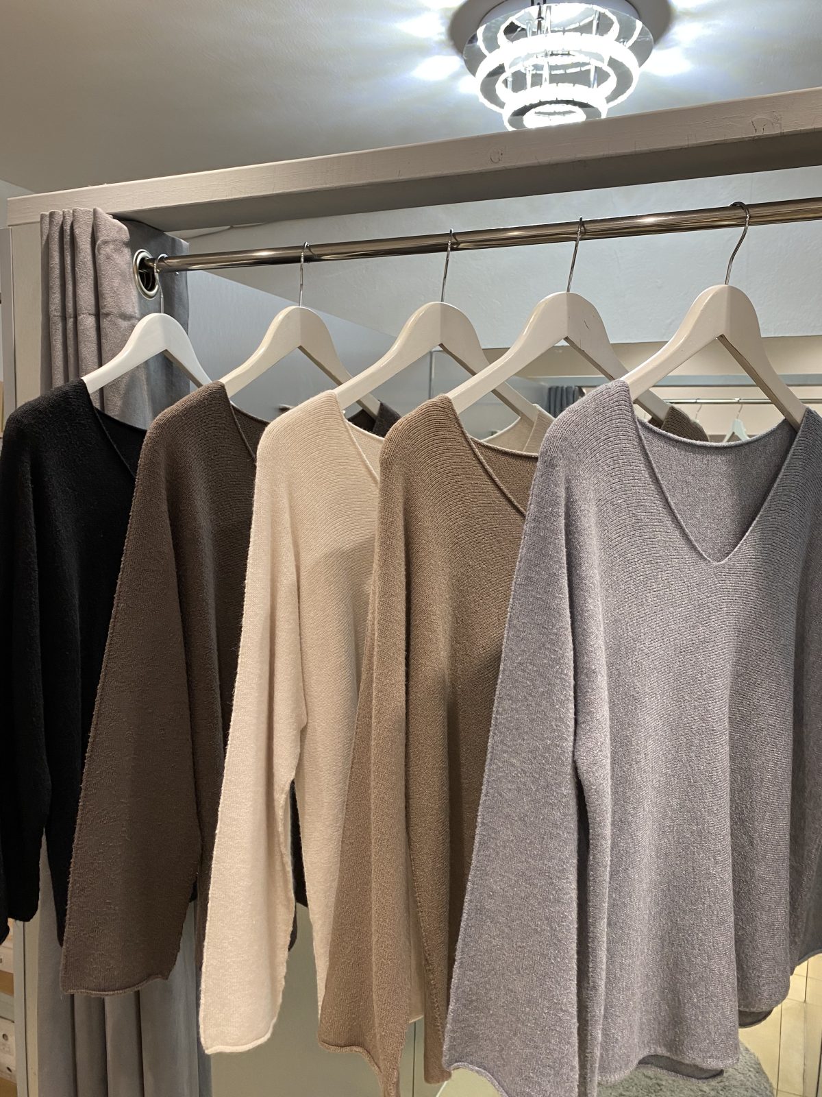 This super soft, lightweight jumper is perfect for layering. Designed with a subtle rounded V-neck, it can be worn as a classic fit or styled off the shoulder for a more relaxed look. The slightly cropped three-quarter sleeves give it a minimal, effortless feel – ideal for autumn days.