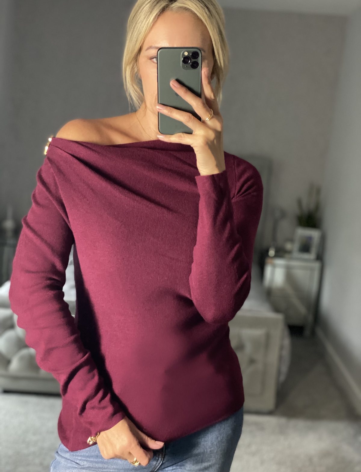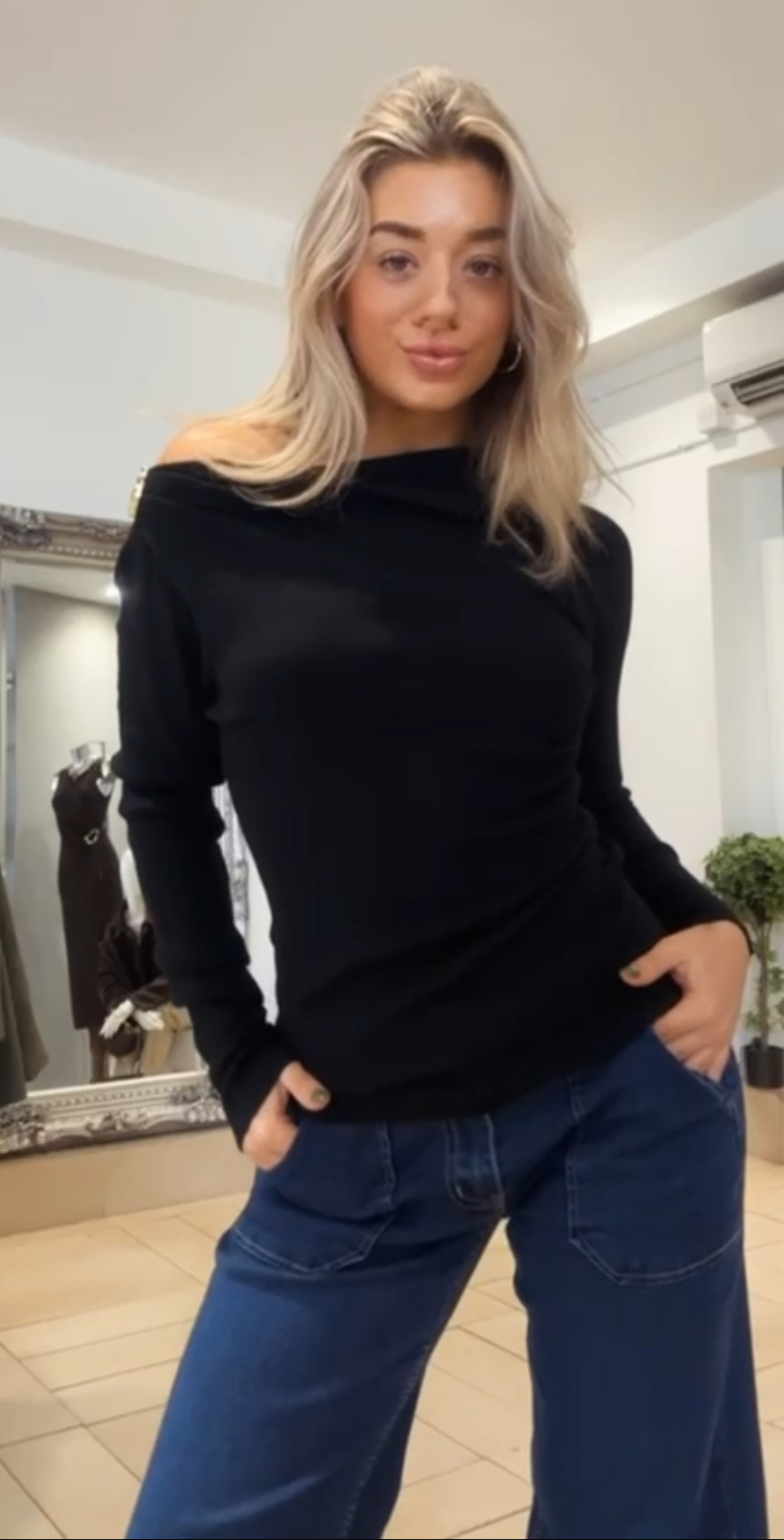 Designed with long sleeves and a delicate mesh-like texture, this versatile piece features elegant metal hardware on one shoulder for an elevated touch. Wear it as-is or style it with one shoulder slightly dropped for a more relaxed look. Available in three stunning colours and fits up to a UK size 14.