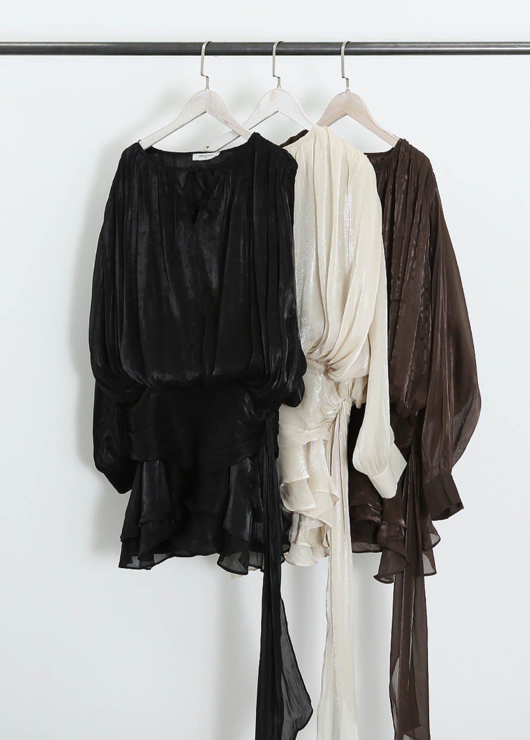 The Georgette Tunic Dress — crafted from 100% polyester Georgette for a graceful, fluid drape. Featuring long sleeves and a softly layered skirt, this timeless silhouette moves beautifully from day to evening. Available in cream, brown, and black, and in sizes XS to XL — an effortlessly sophisticated choice for the party season.”
