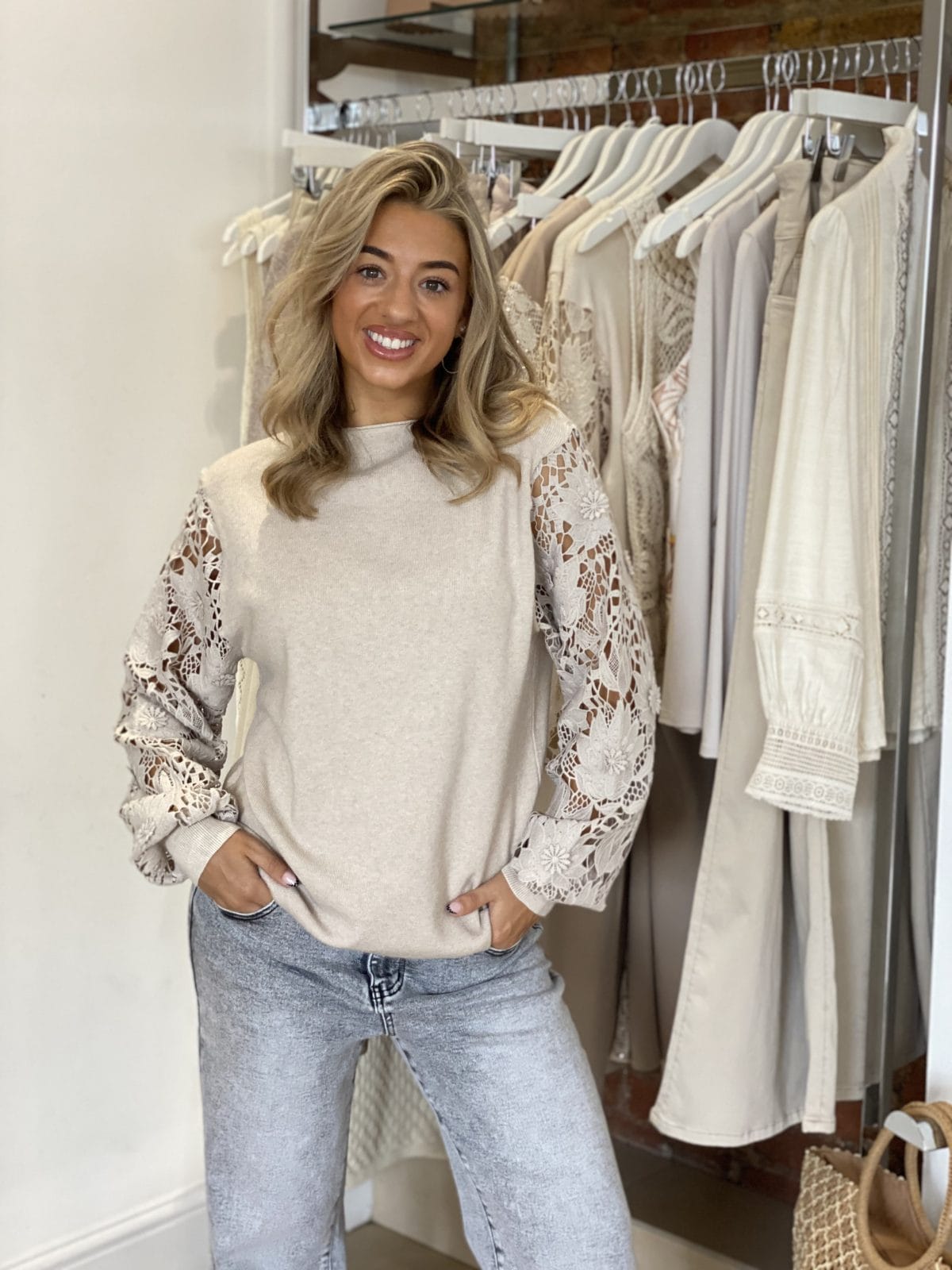 Stay stylish and cozy with our Crochet Lace Arm Jumper! Made from an ultra-soft, stretchy knit this jumper features beautifully detailed lace sleeves and a flattering round neckline. Designed to comfortably fit up to a size 16, it’s perfect for layering as the weather cools — just add a gilet or jacket and let those stunning sleeves shine through. Available in a range of gorgeous colours to suit every mood and wardrobe.