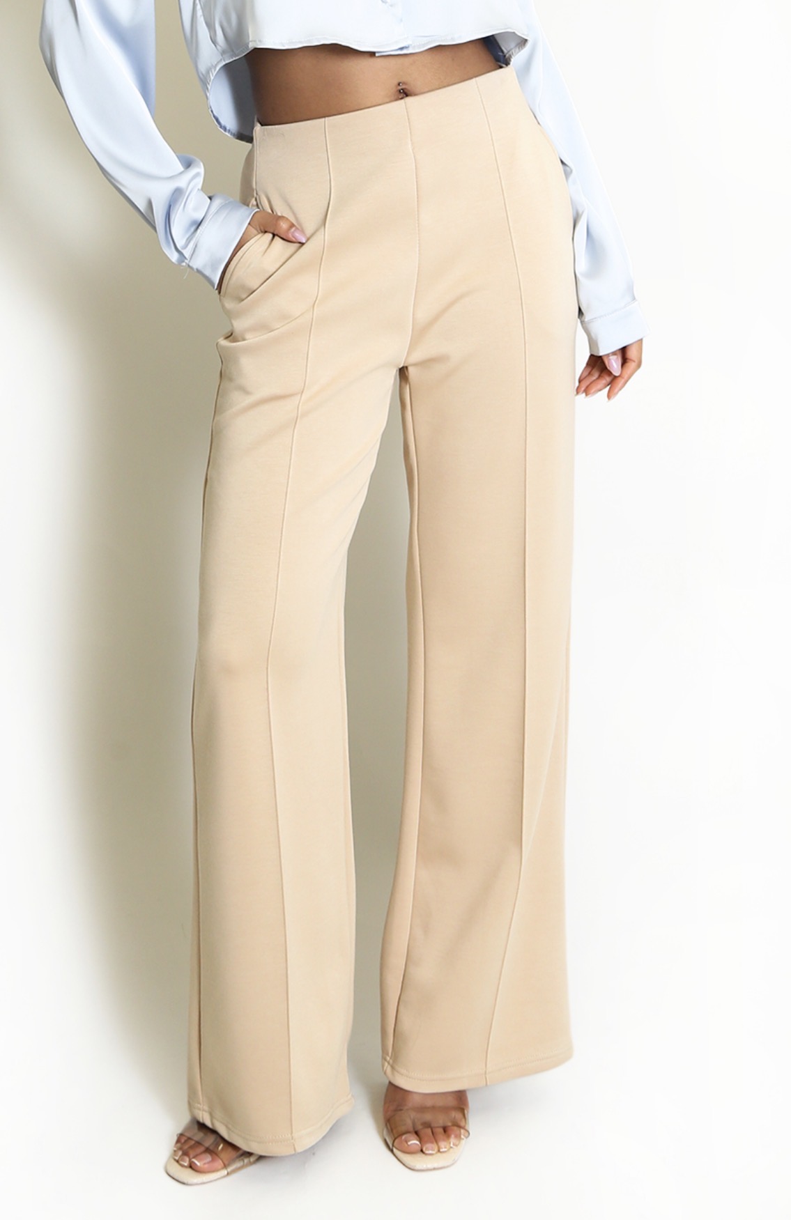 KIA Camel Pin tuck High Waist Wide Leg Trouser