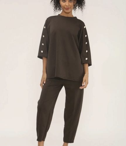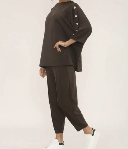 - This chic Co-ord set features a subtle metallic thread woven through the fabric, with relaxed-fit trousers & an elasticated waist and pockets, paired with a matching top for effortless style and comfort.