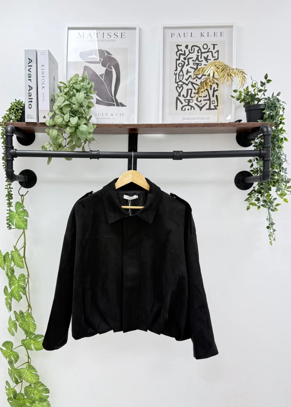 The oversized jacket everyone’s talking about-made from a Lux suede feel fabric and available in S M L. A roomy fit that comfortably goes up to a size 18. Features a sleek concealed zip and is the perfect throw on over your go to knitwear this Autumn/Winter.
