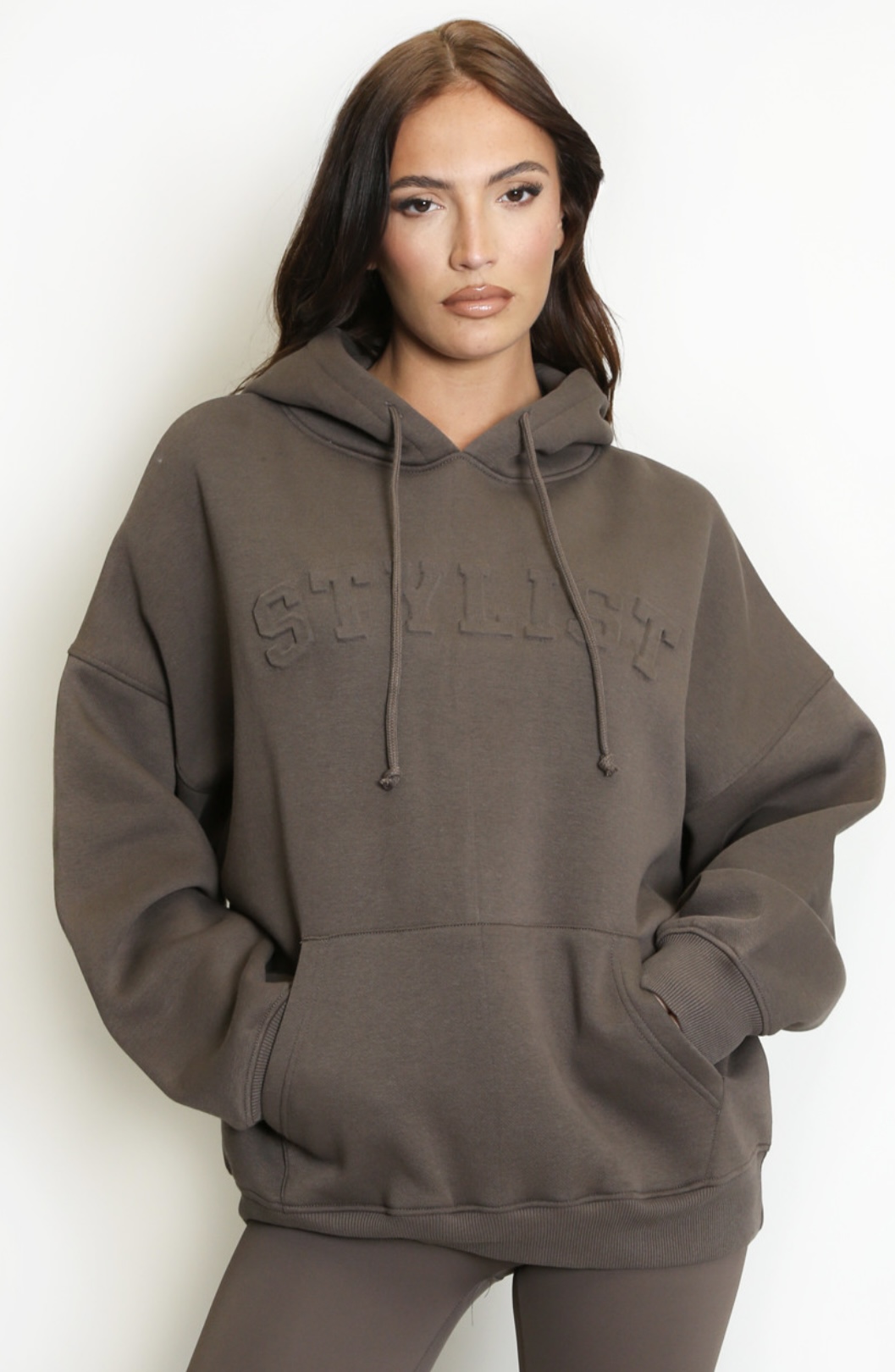 Stay cosy and stylish in this oversized hooded top featuring a bold “STYLIST” embossed print across the front, a classic kangaroo pocket and adjustable drawstring hood. Perfect for layering over jeans, leggings, or gym wear, it’s your go-to for the school run, every day errands, or simply staying warm in cooler months.