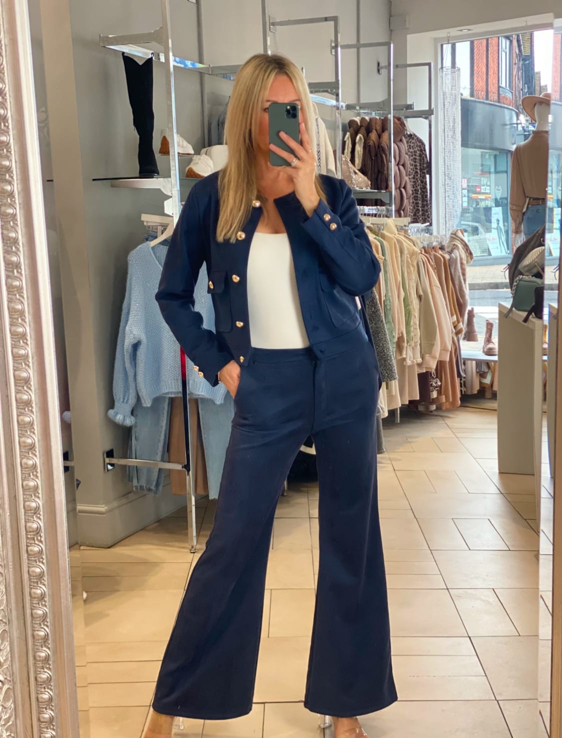 These easy to wear trousers are available in two colours, feature a wide leg, button and zip fastening & pockets in a suede feel fabric. These trousers have a lovely stretch to the fabric making them easy and comfortable to wear.
